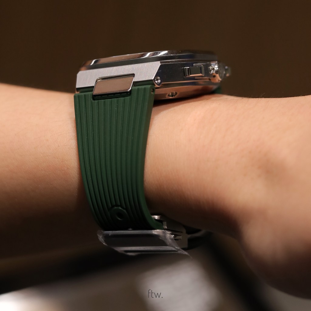 Next up, the way it wears. For something that’s 42mm in size, it hugs my wrist relatively well with a slight overhang. Thanks to the short lug extension and how the lugs extend at a steep angle from the case, it allows this piece to wear smaller on my 16cm wrist, making it a pleasure to put on as a daily wearer. Definitely a plus point for all my buddies out there with smaller wrists! At 14.25mm in thickness, it honestly feels thinner than what’s on paper. I guess a lot of it has to do with the “steps” present on the case, where the side profile doesn’t come off as a flat block like the Tudor Black Bay. Although it would be ideal if the case was thinner, it’s honestly alright as is. While we’re here, it’s worth mentioning how comfortable the rubber strap is. As great and comfortable as the steel bracelet variant is, I was instantly drawn towards the rubber option once tried on.